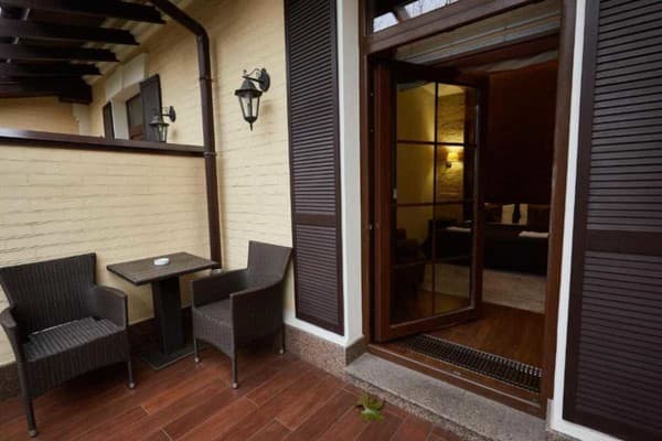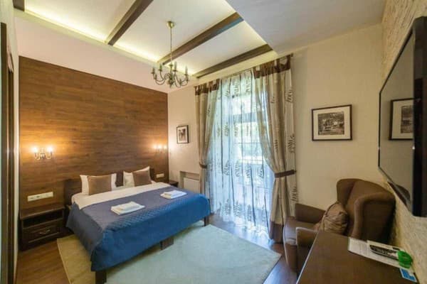 В историческом Киеве, всего в 10 мин. ходьбы от Ж/Д вокзала расположился мини-отель «Petrani Central». Отличительной особенностью отеля является тихий, живописный район для отдыха. Номерной фонд гостиницы представлен номерами разных категорий. Все они с современным ремонтом, удобной мебелью и необходимой техникой. Доступ к сети Интернет предоставляется бесплатно. Для собственного транспорта имеется парковка. Внимание: курить разрешено строго в отведенном месте. В шаговой доступности от «Petrani Central» находятся кафе, рестораны, магазины, к центральной части столицы всего 15 мин езды. От отеля к Ж/Д вокзалу всего 800 м, к аэропорту 38 км, к автостанции 7,9 км.